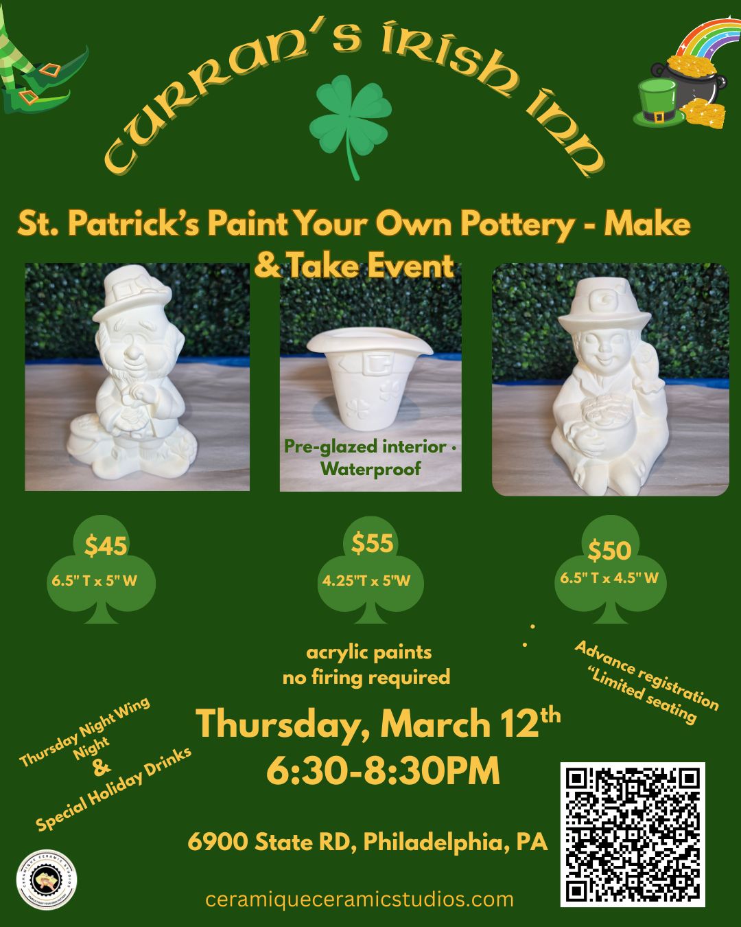 St. Patrick’s Day Paint Your Pottery | Curran’s Irish Inn